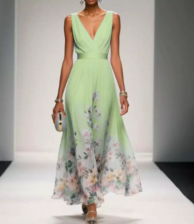 Deze jurk met bloemenprint voor bruiloftsgasten brengt gracieuze beweging en verfijnde elegantie naar warme seizoensgelegenheden. Ontworpen voor zomervieringen, speciale evenementen en elegante bijeenkomsten, biedt het een vloeiende silhouet die de natuurlijke beweging benadrukt terwijl het een zachte en gepolijste uitstraling behoudt.