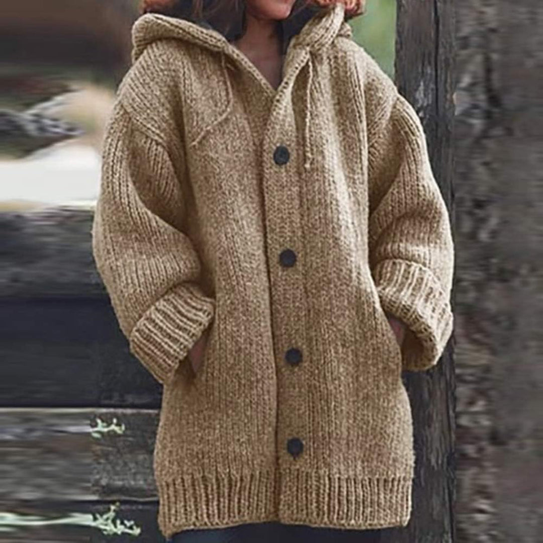 Josie | Dames Lange Grof Gebreide Cardigan met Capuchon